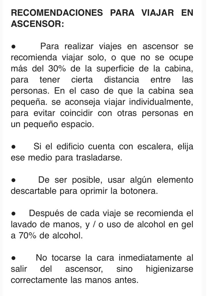 Recomendaciones y medidas de prevención, a adoptar en edificios, ante esta pandemia.